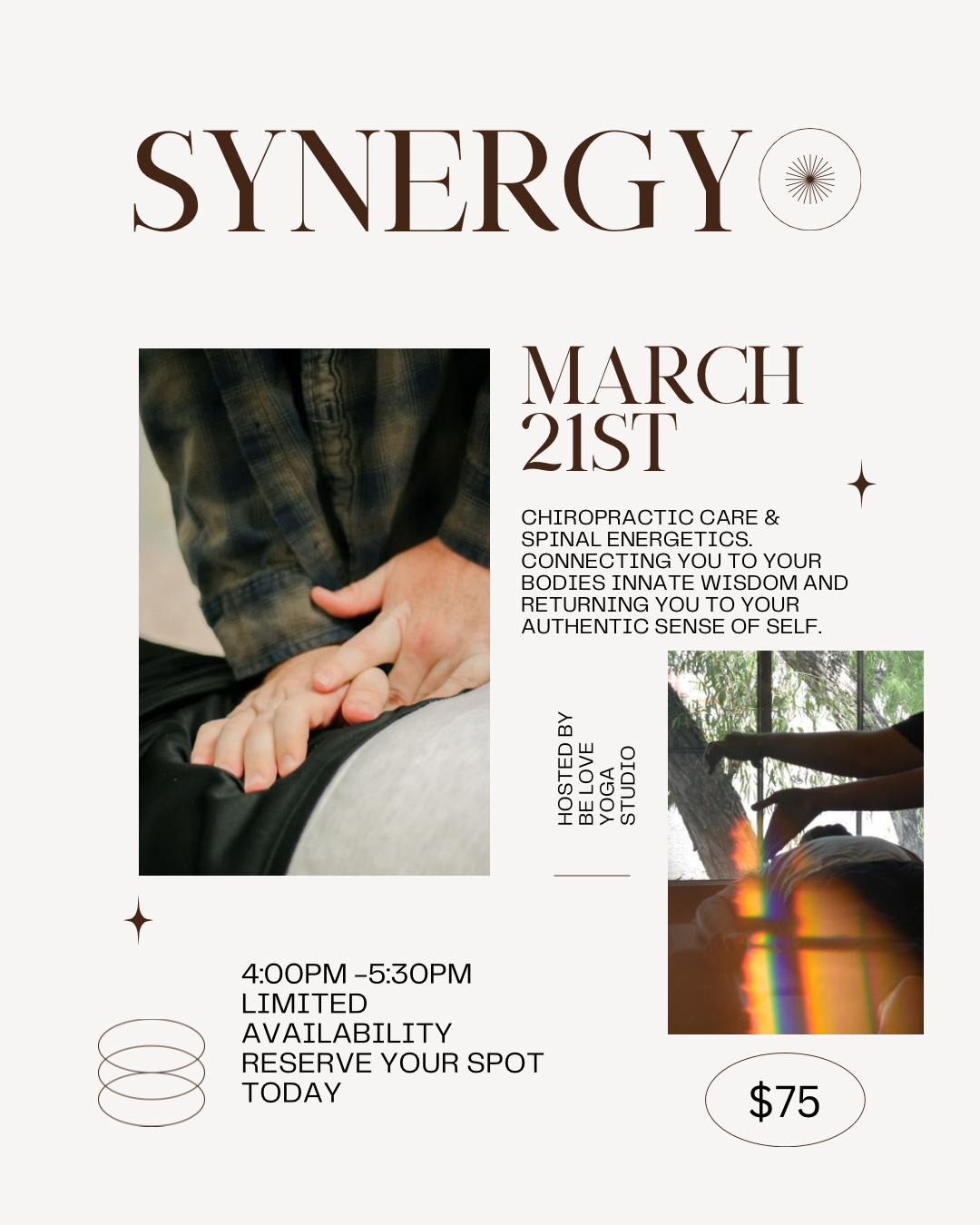Together they'll combine chiropractic care and spinal energetics. Connecting you to your bodies innate wisdom and returning you to your authentic sense of self.